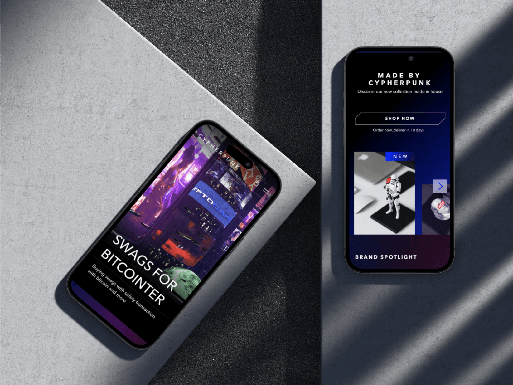 The captivating Cypherpunk City video sets the tone for the store. To feature it as the key visual, I displayed it in full width, maximizing its immersive impact.
