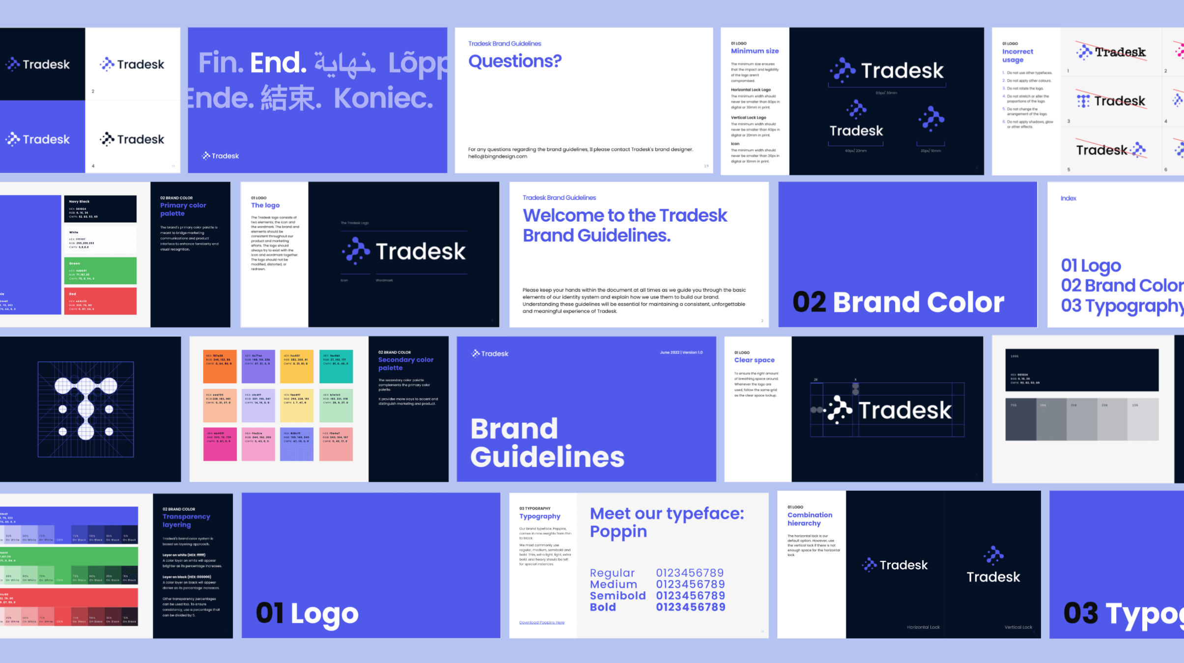 After establishing Tradesk's brand identity, I delivered practical brand guidelines for consistent visual communication. Developed with future design system needs in mind, these guidelines were essential during system development, serve as the foundation for the design system